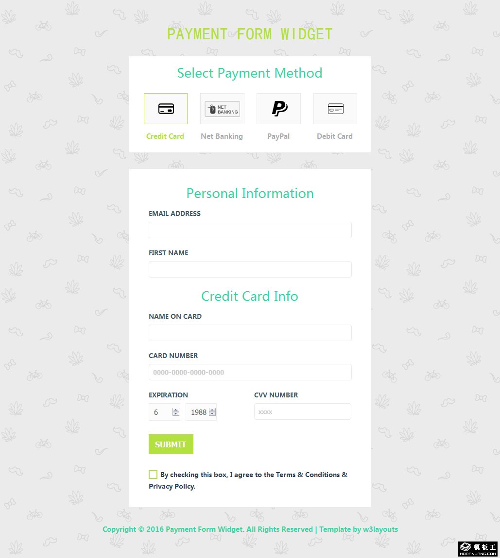 支付方式表单响应式网页模板